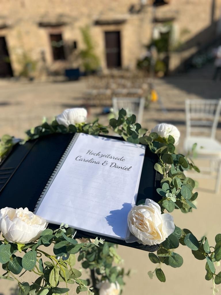 , erzählte uns Carolina im Gespräch. Wie schön, dass wir in unserem Team Trauredner auf Mallorca haben. Carolina hat familiäre Wurzeln in Südamerika (Peru). Spanisch ist also die „Sprache ihres Herzens“. So war auch schnell klar, dass die Freie Trauung zweisprachig vonstatten gehen soll. Mit unserer Rednerin Ximena hatten die beiden eine Traurednerin an ihrer Seite, die deutsch und spanisch fließend spricht.